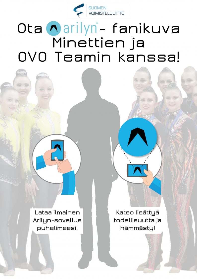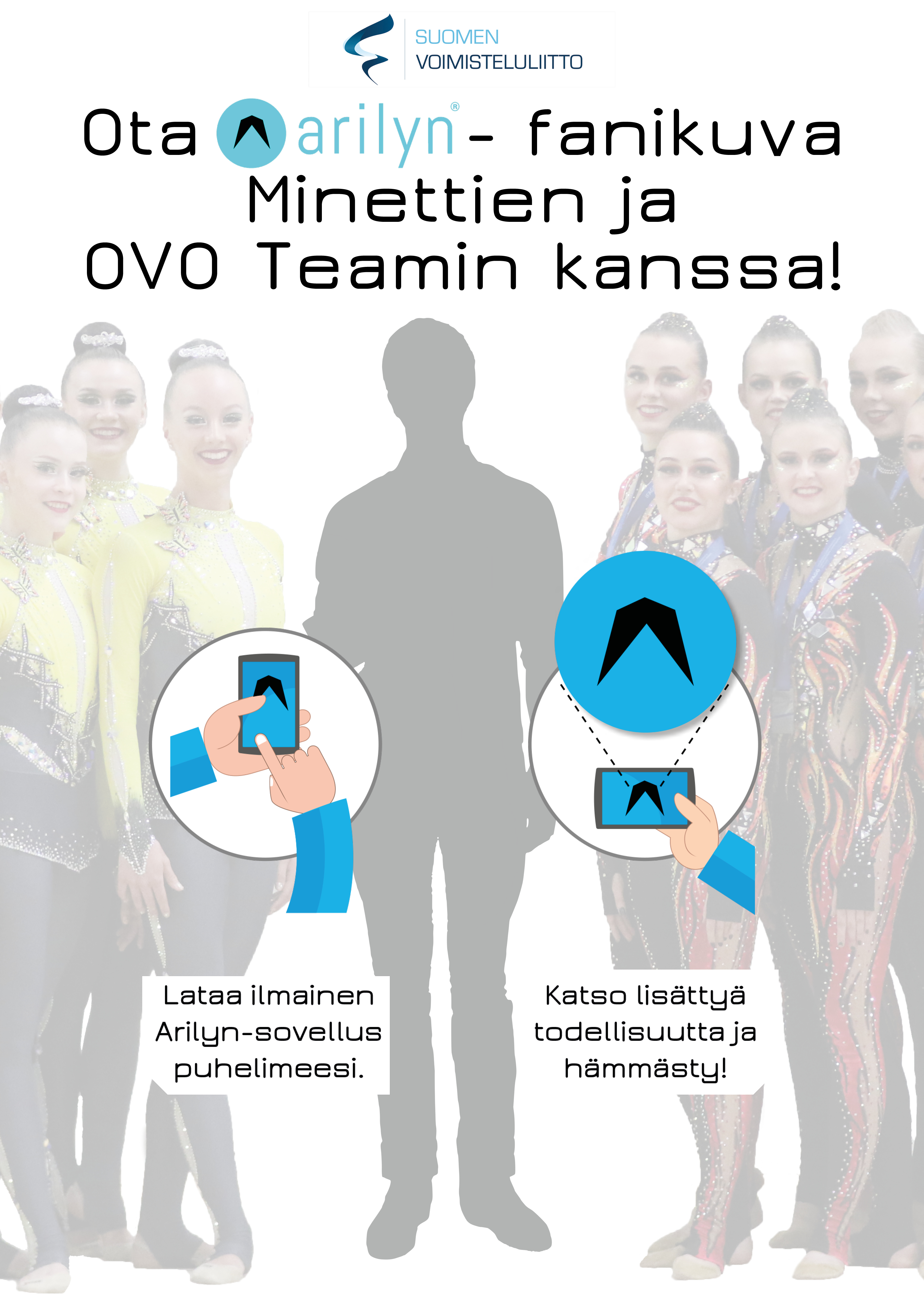 Arilynin avulla pääsemme jakamaan teille tietoa vaikkapa voimistelulajien arvostelusta tai tapahtuma-alueen toiminnoista. Kun olet ryhtynyt käyttämään Arilyniä, voit myös osallistua kaupunkisuunnistukseen, jonka ansiosta tutustut koko tapahtuma-alueeseen ja Turun keskustaan helpolla ja hauskalla tavalla. Kupittaan Urheiluhallin aulatilassa pääset ottamaan fanikuvan Minettien sekä OVO Teamin kanssa!