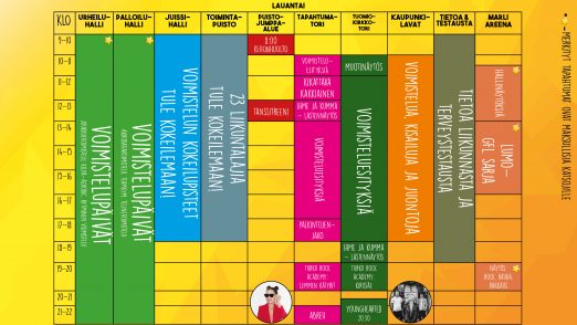 Ohjelma lauantai 9.6.Gymnaestrada_aikataulu_lauantaiTapahtumaopasSuomi Gymnaestrada 20185.4.2018